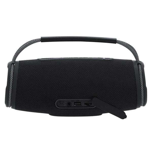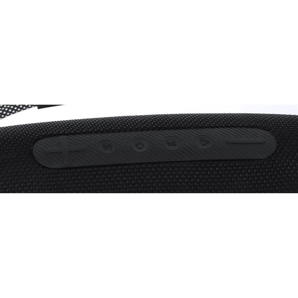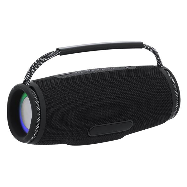 Głośnik bezprzewodowy BT 5.3, moc 2x5W, posiada silikonowy uchwyt ułatwiający noszenie, wielokolorowe światła LED oferujące 7 trybów świecenia, zintegrowany panel sterowania, bateria 1200 mAh, czytnik kart micro SD (nie dołączona), zasięg do 10 m, wejście USB, ładowany przez USB, kabel micro USB w komplecie, produkt wykonany między innymi z poliestru