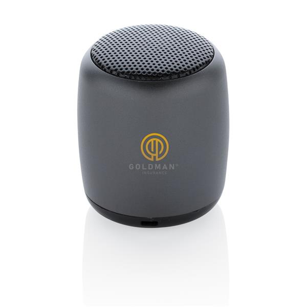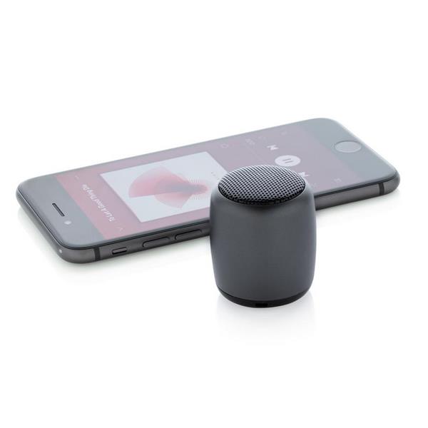 Głośnik bezprzewodowy 3W, BT 5.0, kieszonkowy rozmiar, wykonany z wytrzymałego aluminium, w pełni naładowany akumulator o pojemności 180 mAh pozwala na odtwarzanie muzyki do 3 godzin, zasięg do 10m, kabel do ładowania z TPE bez dodatku PVC w komplecie, ślad węglowy produktu: 0,64 kg CO2