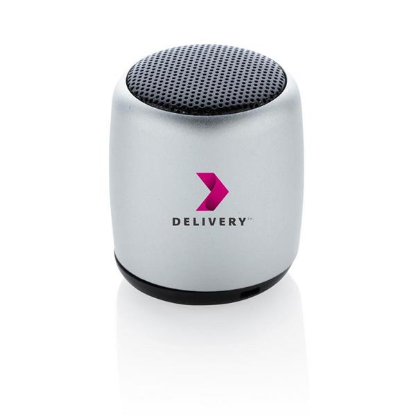 Głośnik bezprzewodowy 3W, BT 5.0, kieszonkowy rozmiar, wykonany z wytrzymałego aluminium, w pełni naładowany akumulator o pojemności 180 mAh pozwala na odtwarzanie muzyki do 3 godzin, zasięg do 10m, kabel do ładowania z TPE bez dodatku PVC w komplecie, ślad węglowy produktu: 0,64 kg CO2