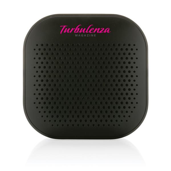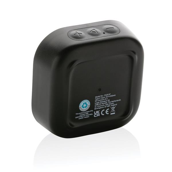 Głośnik bezprzewodowy 3W BT5.3, wodoodporny IPX4, wbudowany mikrofon, funkcja odbierania połączeń, wbudowany akumulator o pojemności 400 mAh pozwala na odtwarzanie muzyki do 3,5 godziny, zasięg do 10 m, wykonany z ABS z recyklingu z certyfikatem RCS, całkowita zawartość materiałów z recyklingu obliczona na podstawie wagi całkowitej przedmiotu: 41%, kabel z TPE z recyklingu w komplecie, w pudełku z papieru kraftowego