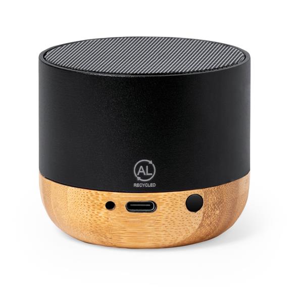 Głośnik bezprzewodowy 3W, BT 5.0, obudowa wykonana z aluminium z recyklingu, bambusowe elementy, bateria 300 mAh, zasięg do 10 m, wejście USB-C, kabel USB-C w komplecie, zgodny z certyfikatem GRS (Global RecycIed Standard)