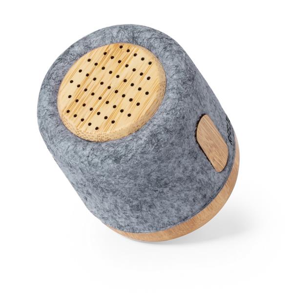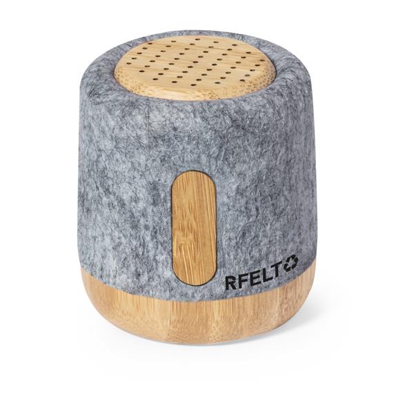 Głośnik bezprzewodowy BT 5.1 3W, obudowa wykonana z bambusa i filcu RPET, bateria 300 mAh, czas pracy: 2-4h, zasięg do 10 m, wejście USB-C, kabel USB-C w komplecie