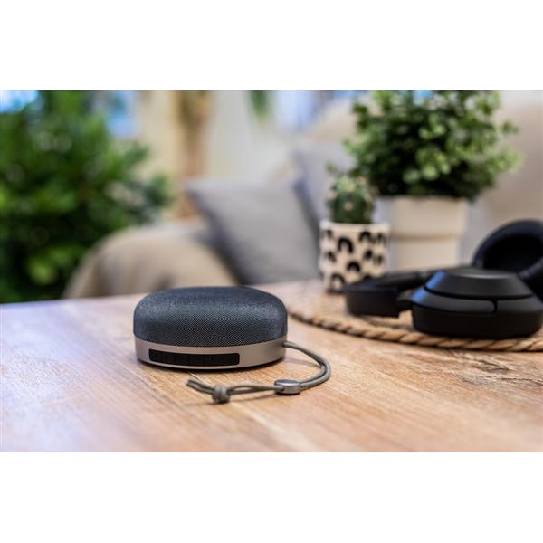 Głośnik bezprzewodowy 5W, BT 5.0, bateria 1200 mAh, posiada radio oraz czytnik kart TF/micro SD (nie dołączona), funkcja odbierania połączeń oraz parowania dwóch głośników, zasięg do 10 m, wejście USB-C, ładowany przez USB, kabel USB-C w komplecie