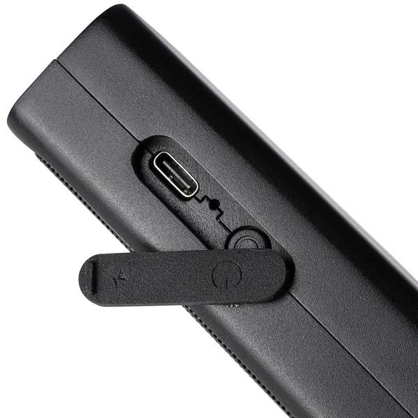 Głośnik bezprzewodowy 5W, metalowa siatka, uchwyt ułatwiający noszenie, latarka (lampka COB i LED), wejście 5v/500mA, BT5.4, bateria 500 mAh, zapakowany pojedynczo w brązowy kartonik, produkt wykonany z ABS z recyklingu, metalu i silikonu