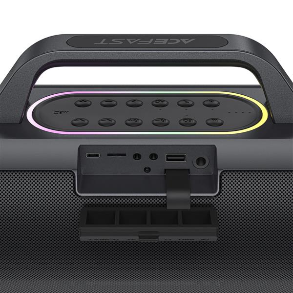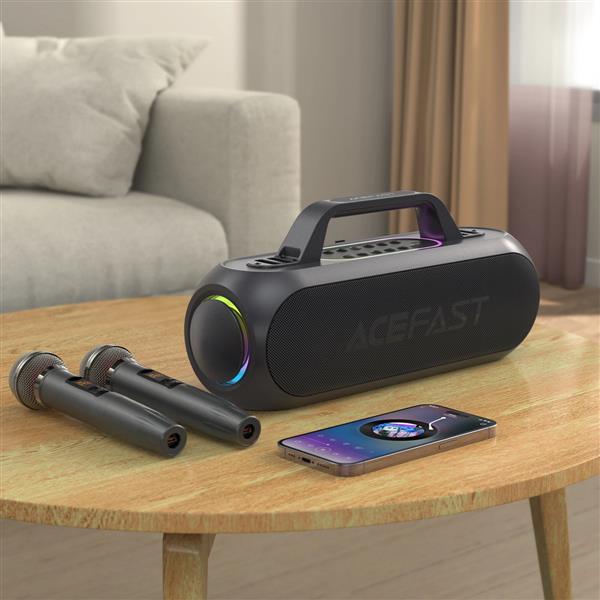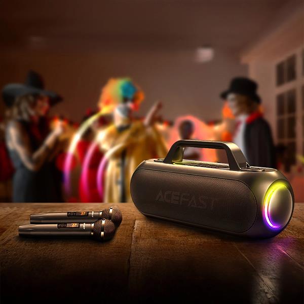 Głośnik bezprzewodowy Acefast K1 pracuje w technologii Bluetooth 5.0 i zapewnia zasięg do 10 metrów. Technologia True Wireless Stereo (TWS) poprawia jakość dźwięku a procesor DSP zapewnia bogate brzmienie z mocnym basem. Wbudowane, kolorowe światła ubarwiają każdą imprezę karaoke i nadają niepowtarzalnego klimatu. Głośnik bezprzewodowy Acefast K1 może być używany przez 8 godzin bez przerwy.