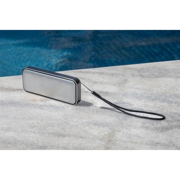 Głośnik bezprzewodowy BrandCharger Nano Pro, wyposażony w 10-watowy przetwornik zapewniający wysokiej jakości dźwięk, zaprojektowany do parowania stereo TWS, możliwe połączenie dwóch głośników Nano Pro ze sobą, aby uzyskać dźwięk stereo, sprawdzi się na dużych imprezach lub spotkaniach, wyposażony w sznurek ułatwiający przenoszenie, zapakowany w elegancki czarny karton z wkładką, produkt wykonany z aluminium i PU