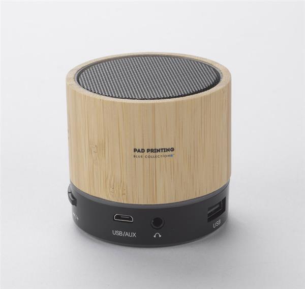Głośnik bezprzewodowy EMO to niewielkich rozmiarów gadżet o wielu funkcjach. Posiada możliwość odtwarzania muzyki z urządzeń mobilnych, pamięci USB oraz karty microSD, pełni funkcję zestawu głośnomówiącego oraz umożliwia słuchanie stacji radiowych. Jego wygląd nawiązujący do ekologicznych trendów jest urozmaicony światłem LED w białym kolorze, które włącza się zaraz po uruchomieniu urządzenia. Produkt jest zgodny z odpowiednimi dyrektywami Unii Europejskiej oraz posiada znak CE. Dane techniczne: moc wyjściowa: 3W x 1, czas pracy: 1-2 godziny, pojemność baterii 350 mAh.