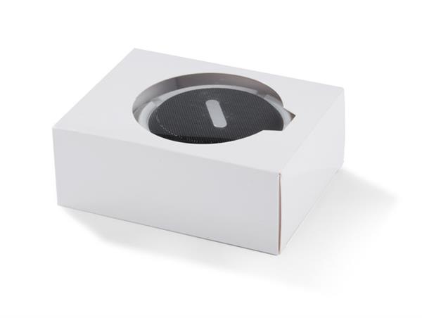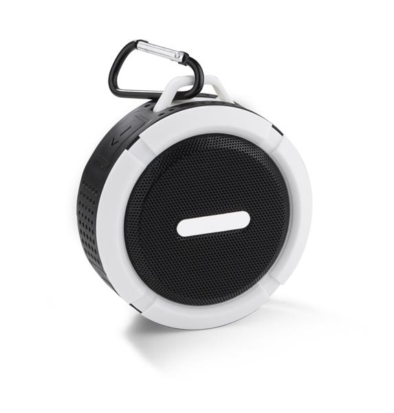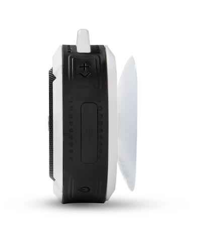 Mały głośnik z przyssawką FUSION. Świetnie nadaje się do użytku turystycznego i na co dzień np. przy lekkim deszczu. Możliwość wykorzystania głośnika jako zestawu głośnomówiącego. Odtwarzanie muzyki jest możliwe za pośrednictwem bluetooth (wersja 4.2) lub karty micro SD. W zestawie kabel do ładowania z końcówką microUSB i karabińczyk. Posiada metalową płytkę przeznaczoną do wykonania znakowania. Produkt jest zgodny z odpowiednimi dyrektywami Unii Europejskiej oraz posiada znak CE. Dane techniczne: Moc wyjściowa: 3W x 1 Napięcie: 5V Stosunek S/N: ? 70 dB, czas pracy: 1-1,5 godziny, pojemność baterii 300mAh
