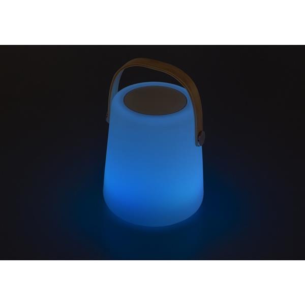 Głośnik bezprzewodowy z uchwytem, wodoodporny (IPX44), lampka LED zmieniająca kolory, w komplecie pilot zdalnego sterowania pozwalający na zmianę utworu czy koloru podświetlenia, wejście 100V-240V, 50/60Hz, wyjście 5V/1A, kabel USB w komplecie