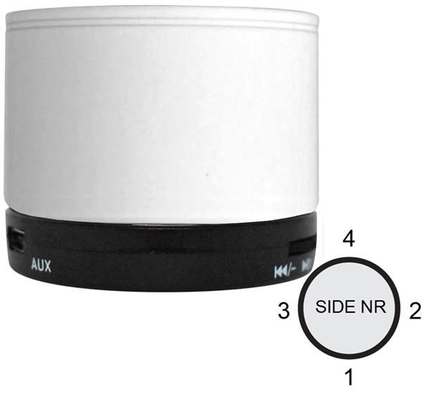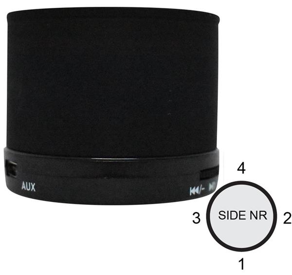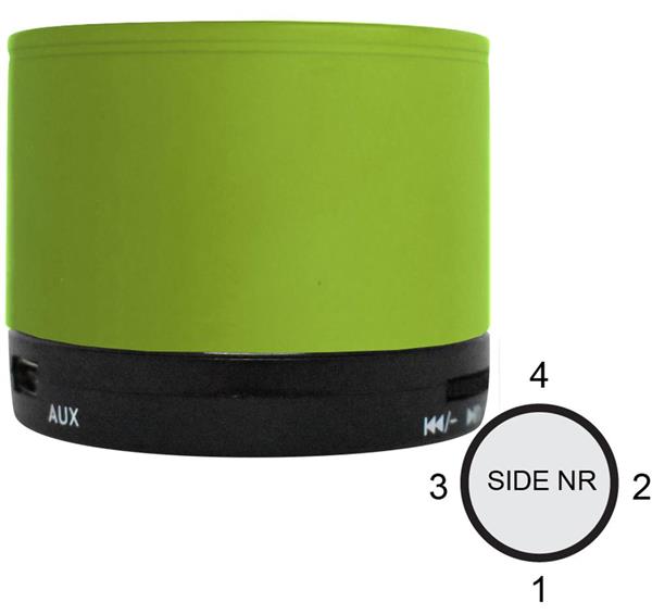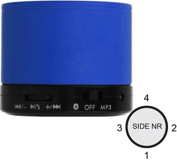 Bezprzewodowy głośnik 5.1 wykonany z ABS, z korpusem pokrytym farbą imitującą gumę oraz diodą LED. Posiada akumulator litowy o pojemności 450mAh, port na kartę SD oraz wyjście AUX/USB. Funkcja odbierania połączeń telefonicznych. Moc wyjściowa 3W/30hm/ 5V. Czas odtwarzania ok. 3h.