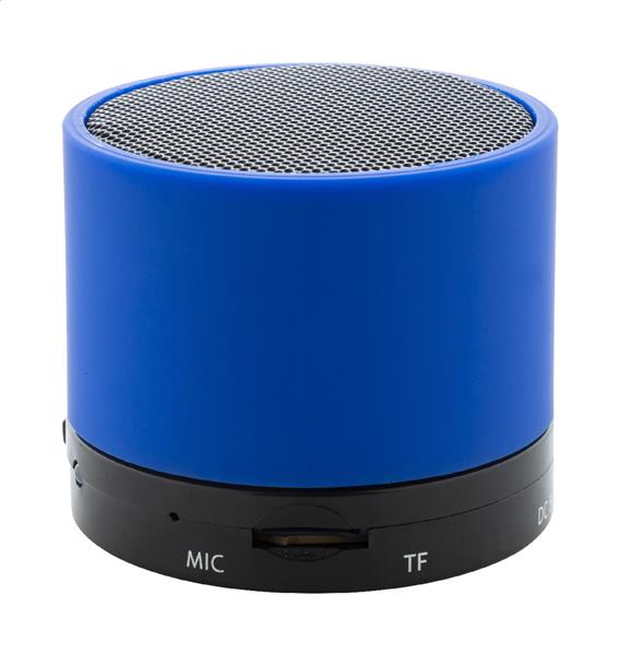 Głośnik bezprzewodowy z recyklingowanego ABS w gumowanej obudowie z metalową siatką i akumulatorem (300 mAh). Z funkcją głośnomówiącą i odtwarzaniem plików MP3 z karty micro SD. W zestawie kabel USB do ładowania.