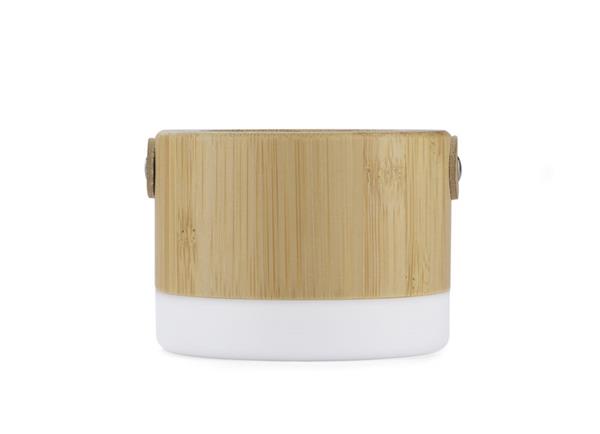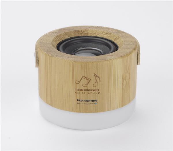 RORAT to wielofunkcyjny i designerski głośnik. Wykonany z bambusa tworzywa z wygodnym paskiem z ekoskóry, który pozwala go używać w każdych warunkach. Wbudowana na spodzie lampka zmienia urządzenie w ciekawą ozdobę jaki i zapewnia światło np. pod namiotem. Odtwarzanie muzyki za pośrednictwem bluetooth (wersja 5.0). Produkt jest zgodny z odpowiednimi dyrektywami Unii Europejskiej oraz posiada znak CE.