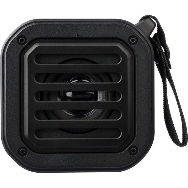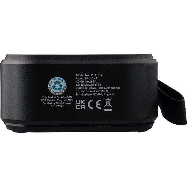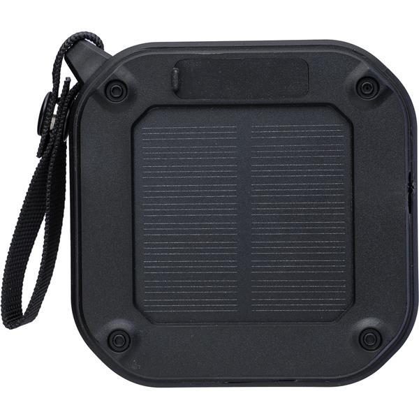 Głośnik bezprzewodowy, IPX6 co oznacza ochronę przed strumieniem wody przez 3 minuty, opaska na nadgarstek i karabińczyk umożliwiający przypinanie, moc wyjściowa 3 W, wejście DC 5 V, wbudowany akumulator 400 mAh, działa w odległości 15-20 metrów od źródła sygnału, stosunek sygnału do szumu 75 dB, częstotliwość 100 Hz-20 K Hz, kabel ładujący o długości 30 cm typu C w zestawie, wbudowana latarka LED (30 lumenów), panel słoneczny wydłużający czas użytkowania, 4 godziny czasu gry, BT 5.3, zapakowany w brązowy kartonik, produkt wykonany z ABS z recyklingu, PVC