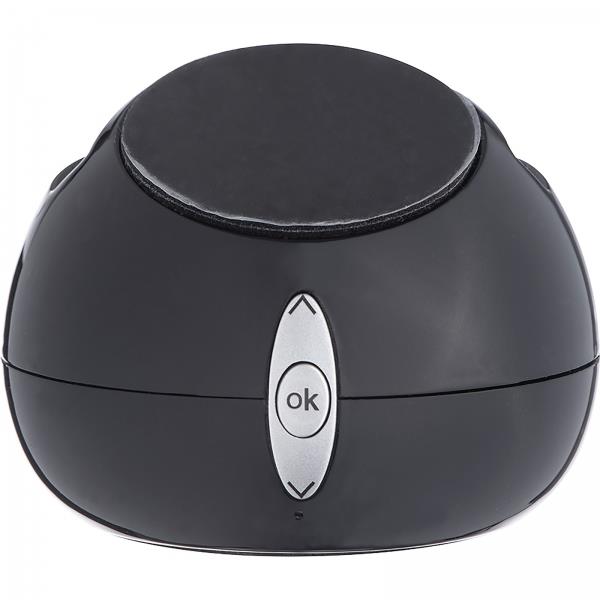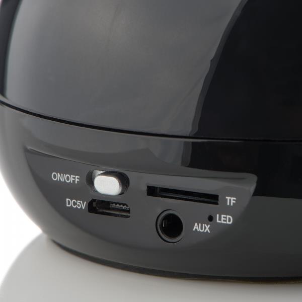 Plastikowy głośnik Bluetooth z funkcją głośnomówiącą. Od spodu – gumowana powierzchnia antypoślizgowa, od góry – guma pozwalająca korzystać z głośnika jak z podstawki pod telefon czy tablet. Bluetooth 3.0, wejście Micro SD card, radio FM oraz regulator głośności. Kabel do ładowania Micro USB w zestawie.