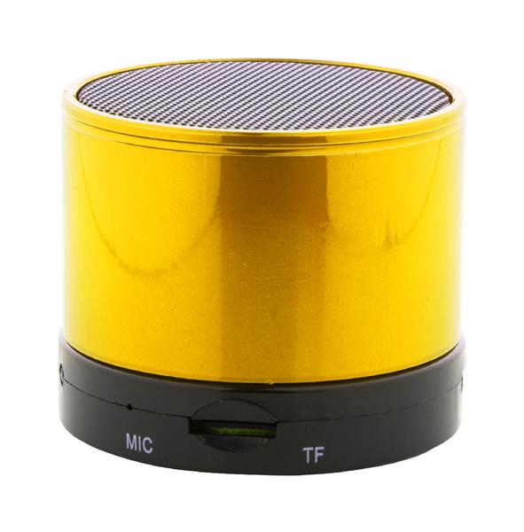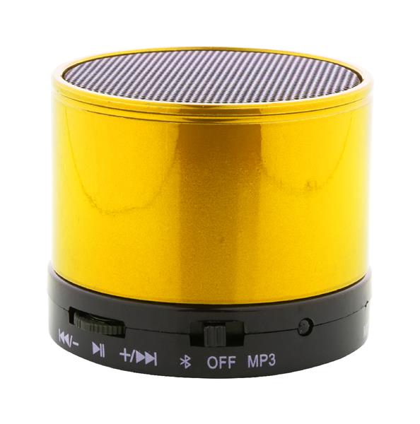 Bezprzewodowy głośnik z metalową obudową. Z radiem, odtwarzaczem MP3, funkcją głośnomówiącą i wbudowanym akumulatorem. W zestawie ładowarka USB i kabel aux-in.