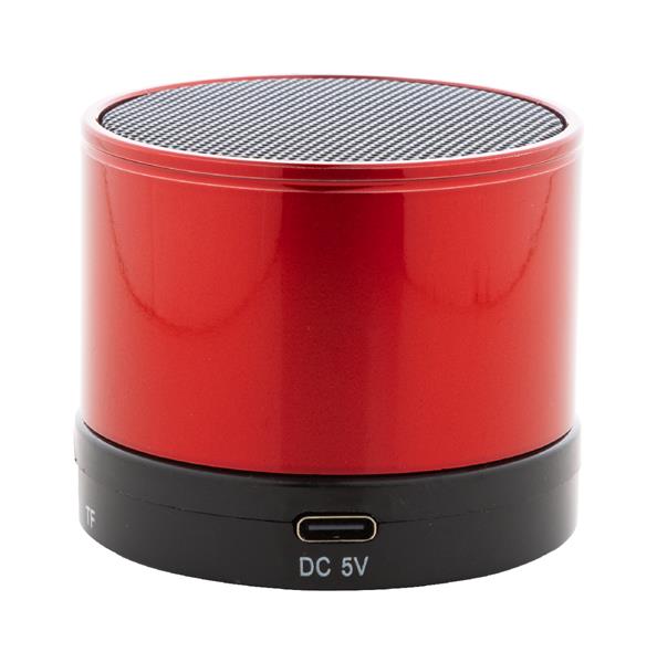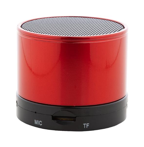 Bezprzewodowy głośnik z metalową obudową. Z radiem, odtwarzaczem MP3, funkcją głośnomówiącą i wbudowanym akumulatorem. W zestawie ładowarka USB i kabel aux-in.