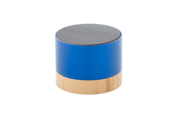 Bezprzewodowy głośnik z aluminium pochodzącego z recyklingu i bambusową podstawą. Z funkcją głośnomówiącą i wbudowanym akumulatorem. W zestawie kabel USB do ładowania.