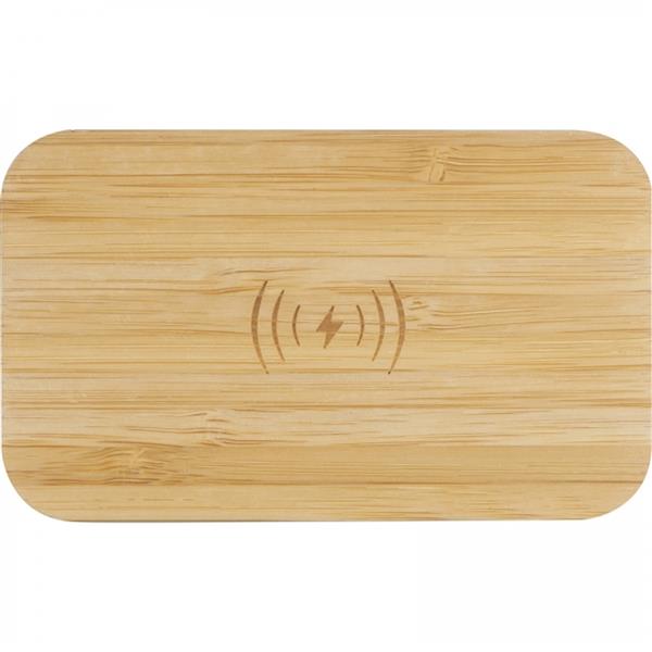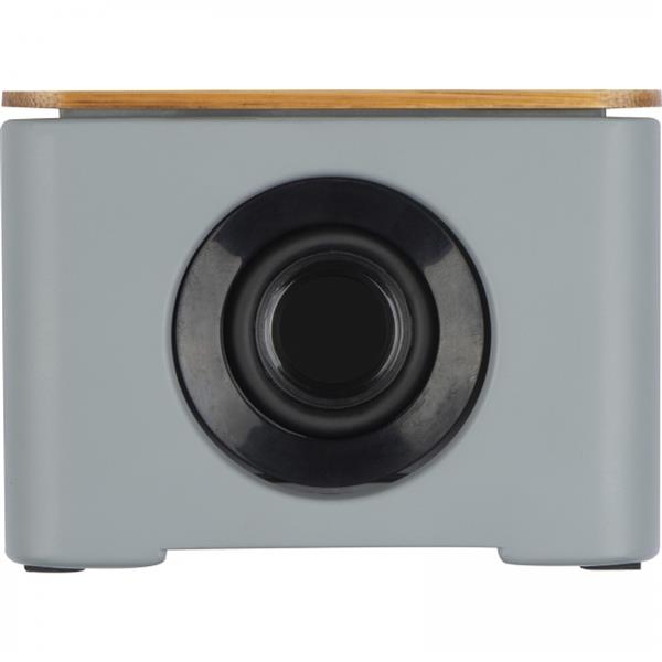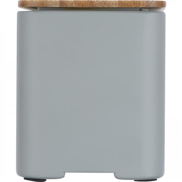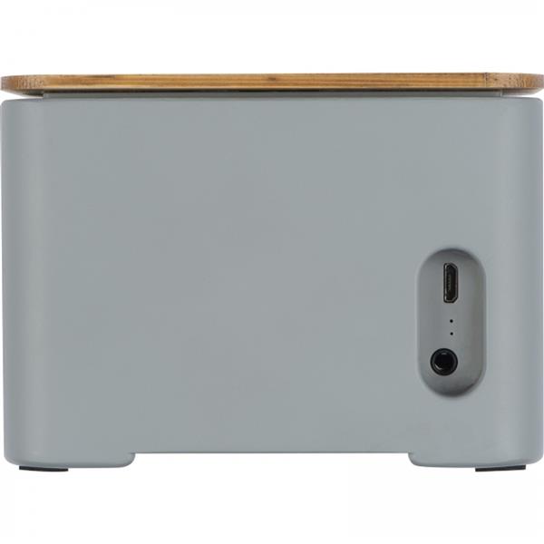 Głośnik Bluetooth z cementu wapiennego. W bambusowej części znajduje się zintegrowana ładowarka indukcyjna.