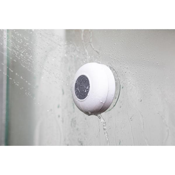 Głośnik bezprzewodowy, Bluetooth 4.0, wyposażony w przyssawkę umożliwiającą zamontowanie głośnika np. pod prysznicem. Klasa wodoodporności IPX4. Funkcja odbierania połączeń telefonicznych. Moc wyjściowa: 3 W. Wbudowany akumulator litowo-jonowy o pojemności 300 mAh. Czas ładowania: około 90 minut. Czas odtwarzania 3-4 godzin. Ładowanie DC prosty 2,5×0,7 mm 5V.