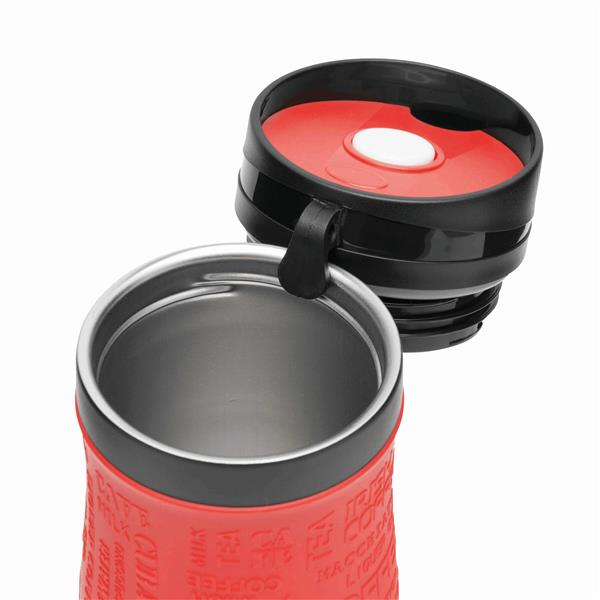 Kubek termiczny GOLDEN DREAM wewnątrz i na zewnątrz ze stali nierdzewnej. Plastikowe odkręcane wieczko, przesuwane zamknięcie wbudowanego otworu do picia, w wieczku wbudowany haczyk do zawieszania, kolorowa, gumowana, silikonowa nakładka dla lepszej przyczepności, ok. 380 ml pojemności, pakowany w pudełko. Materiał: Stal nierdzewna/Silikon/Plastik Kolor: czarny, czerwony Tagi: Kubki,filiżanki,przybory kuchenne,artykuły gospodarstwa domowego,kubki/garnki termiczne,akcesoria podróżne,kubki do kawy