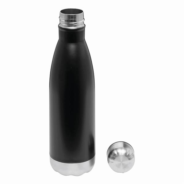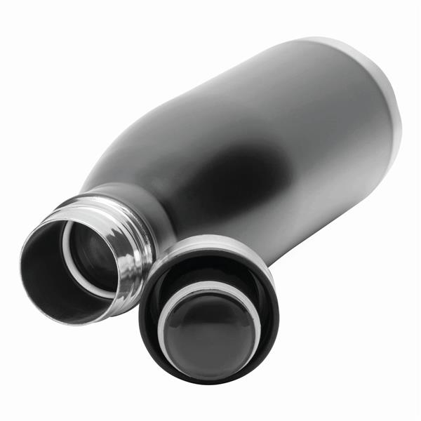 Butelka próżniowa o podwójnych ściankach GOLDEN TASTE. Wewnątrz i na zewnątrz ze stali nierdzewnej, z bezpieczną zakrętką, o pojemności ok. 500 ml. Materiał: Stal nierdzewna Kolor: czarny Tagi: Butelki do napojów,przybory kuchenne,artykuły gospodarstwa domowego,kubki/garnki próżniowe,kubki/garnki termiczne,akcesoria podróżne