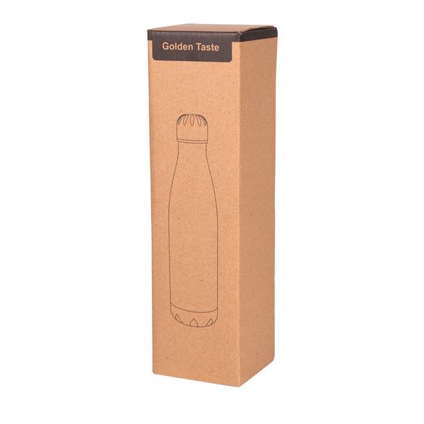 Butelka próżniowa o podwójnych ściankach GOLDEN TASTE. Wewnątrz i na zewnątrz ze stali nierdzewnej, z bezpieczną zakrętką, o pojemności ok. 500 ml.