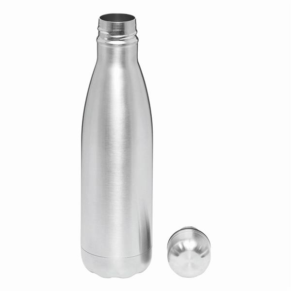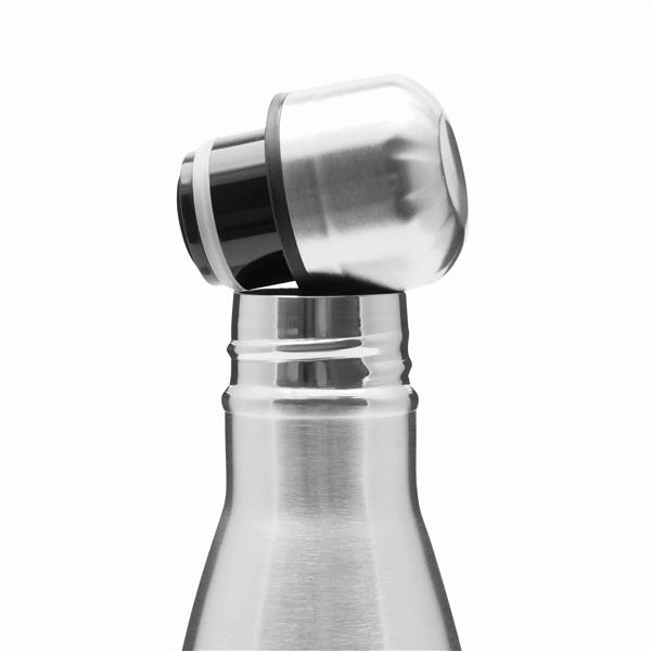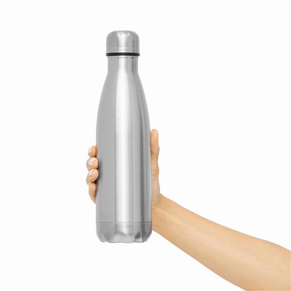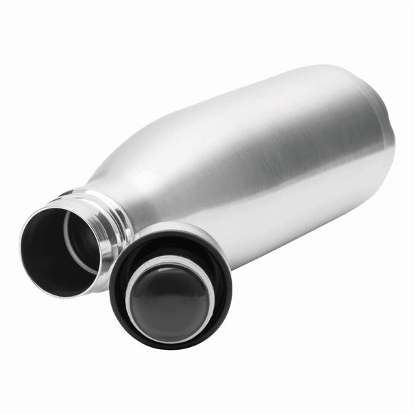 Butelka próżniowa o podwójnych ściankach GOLDEN TASTE. Wewnątrz i na zewnątrz ze stali nierdzewnej, z bezpieczną zakrętką, o pojemności ok. 500 ml. Materiał: Stal nierdzewna Kolor: srebrny Tagi: Butelki do napojów,przybory kuchenne,artykuły gospodarstwa domowego,kubki/garnki próżniowe,kubki/garnki termiczne,akcesoria podróżne