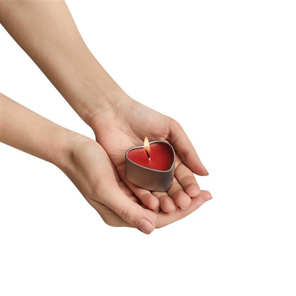 Świeczka o zapachu wanilii GOOD SPIRITS w metalowym świeczniku w kształcie serca.