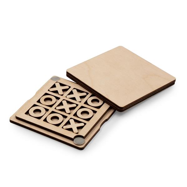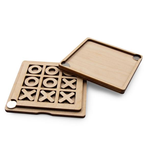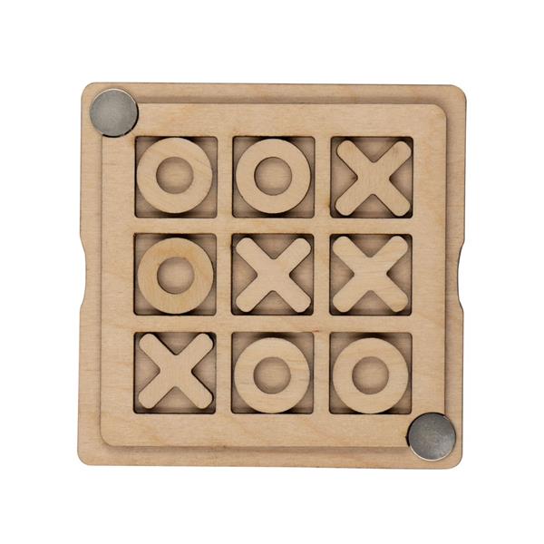 Gra „kółko i krzyżyk” w pudełku zamykanym na magnesy, zawiera elementy w kształcie kółek i krzyżyków, może być ciekawym sposobem na ćwiczenie strategii i logicznego myślenia, kieszonkowy rozmiar, produkt wykonany ze sklejki. Wyprodukowana w Europie / made in Europe.