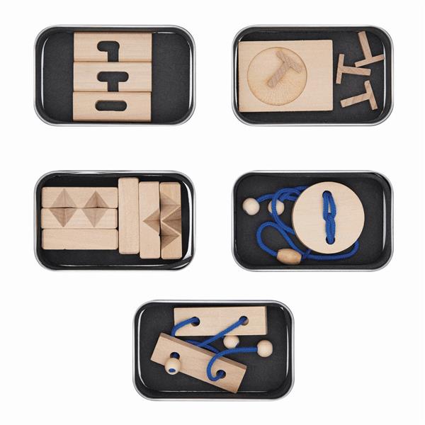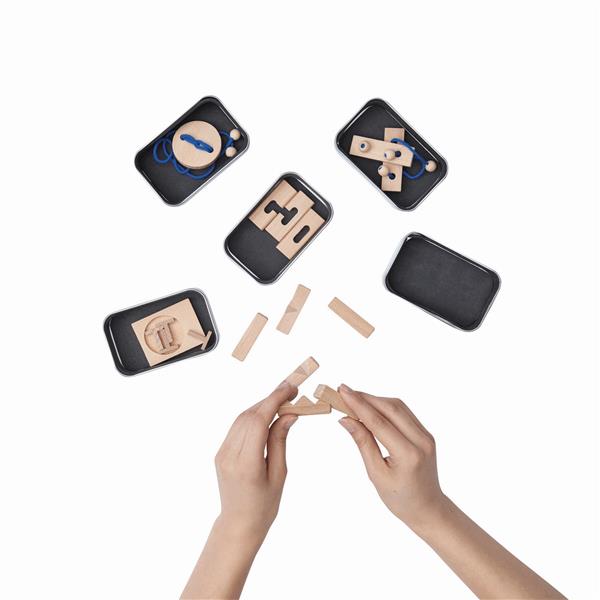 Gra logiczna THINK ABOUT w metalowym pudełku z papierową etykietą. Miks 5 gier. Materiał: Drewno/Metal Kolor: srebrny Tagi: gry,puzzle,przedmioty rekreacyjne