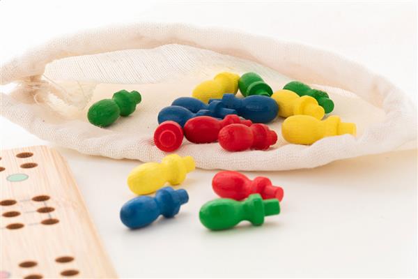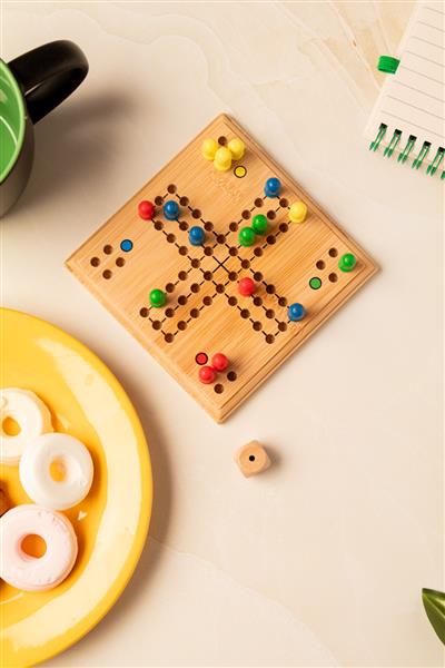 Bambusowa gra Ludo w bawełnianym etui ze sznurkiem.