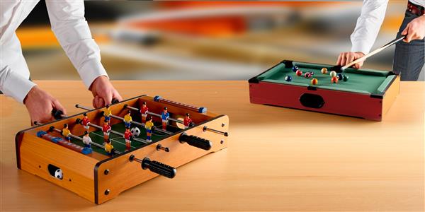 Gra mini-piłkarzyki, 6 zawodników po każdej stronie oraz piłka