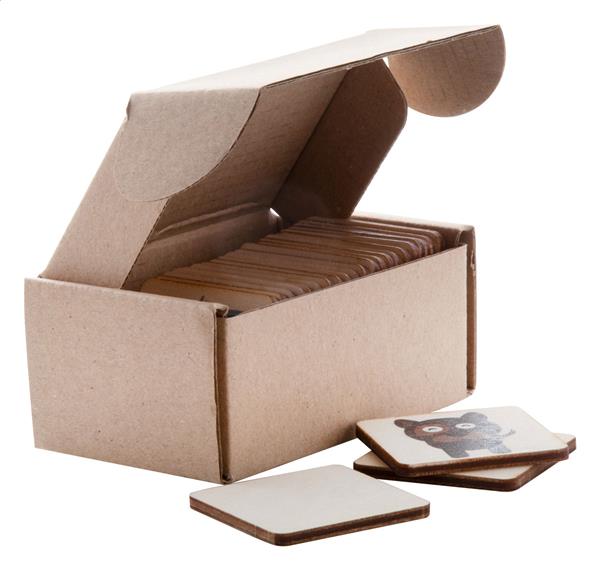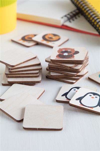Description: Laminowana gra pamięciowa z drewna brzozowego z motywem tematycznym. Z 24 płytkami (40×40 mm). Cena obejmuje 1 kolorowy nadruk logo na tylnej stronie wszystkich płytek. Minimalne zamówienie: 50 sztuk. Primary Color: naturalny Material 1: Drewno Rozmiar: 95×40×55 mm Shape: zwierzęta