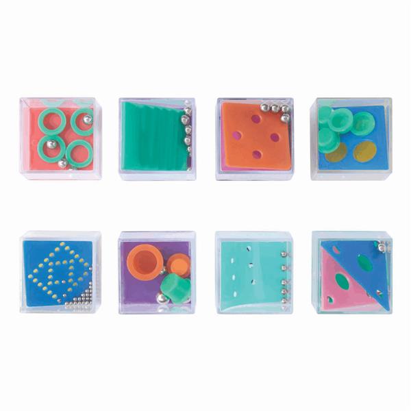 Gra zręcznościowa TRICKY THING. Transparentna kostka z kolorową grą zręcznościową wewnątrz. Miks 24 różnych, losowo wybranych gier.