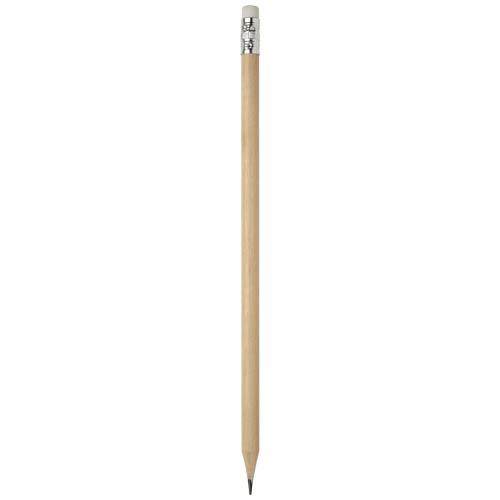 Ołówek z gumką. Ołówek wykonany jest z drewna topoli, gumka z grafitu, a skuwka z aluminium.