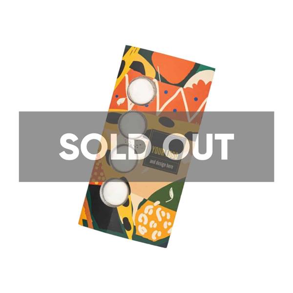 Nasz produkt, Push The Button, otwiera drzwi do podwójnej personalizacji. Możemy umieścić Twoje logo w formie powtarzalnego wzoru na tyle blistra, w którym znajdują się cukierki. Jeszcze więcej przestrzeni dostarcza karnet, na którym możemy wydrukować logo marki, dowolną grafikę lub treść.