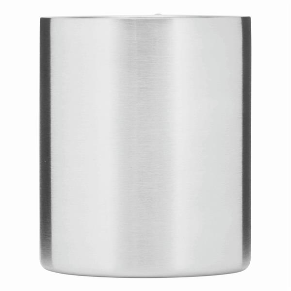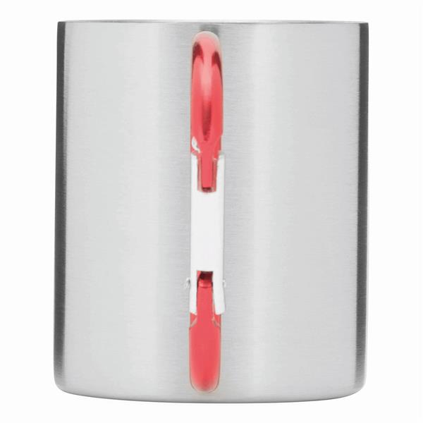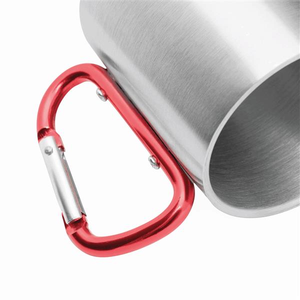 Kubek HIKING DAY ze stali nierdzewnej wewnątrz i na zewnątrz, pojemność ok. 200 ml, z kolorowym karabińczykiem.