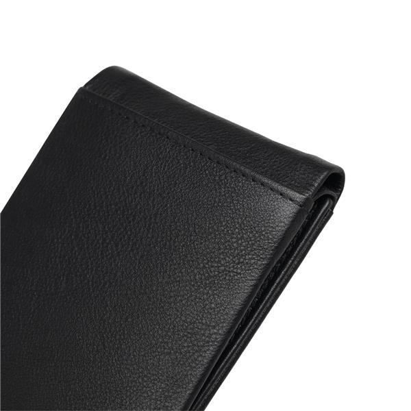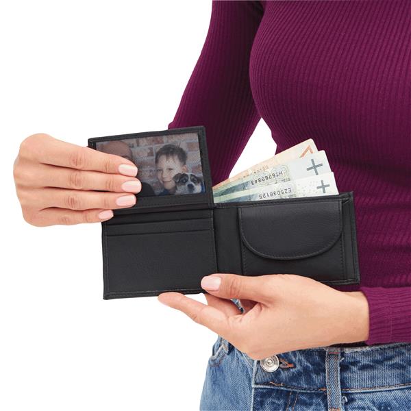 Skórzany portfel HOLIDAY, 4 wsuwane kieszonki na karty kredytowe, 2 przegrody na banknoty, 1 kieszonka na monety z zapięciem na zatrzask, 1 siatkowa kieszonka na dokument tożsamości lub prawo jazdy, na zewnątrz 1 wsuwana kieszonka na karty kredytowe lub hotelowe karty-klucze. Materiał: Skóra Kolor: czarny Tagi: portfele,portmonetki,portmonetki,skóra