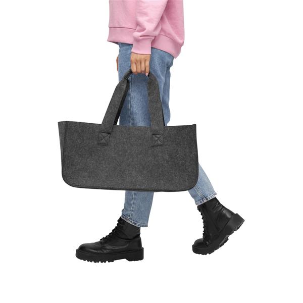 Filcowa torba HOMY posiada 2 bardzo solidne paski, przeznaczona jest do przenoszenia i przechowywania drewna opałowego do kominka, ale może również służyć jako pojemnik do przechowywania wełny lub gazet. Materiał: Poliester Kolor: szary Tagi: torby,artykuły filcowe