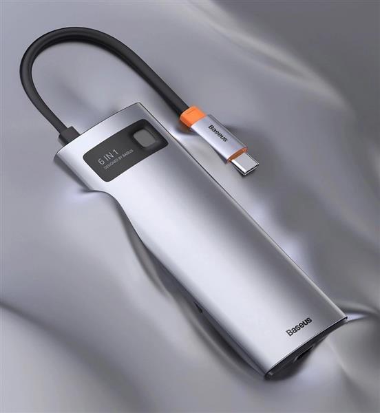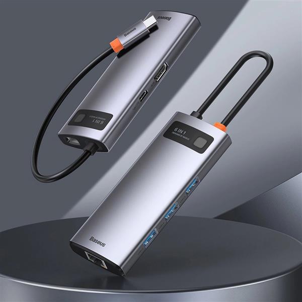 Baseus Metal Gleam 6w1 wielofunkcyjny HUB USB Typ C – USB Typ C Power Delivery 100 W / HDMI 4K 30 Hz / 3x USB 3.2 Gen 1 / RJ45 1 Gbps