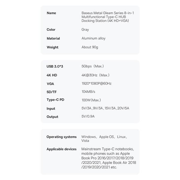 Gadżet od marki Baseus pozwoli Ci na w pełni swobodną pracę lub zabawę. Wszystko dzięki dużej liczbie dostępnych portów oraz gniazd. Nowe laptopy często nie mają wystarczającej ilość gniazd USB lub HDMI. Dzięki HUBowi Baseus nie musisz się martwić ich brakiem. Dodatkowo znajdziesz w nim czytnik kard SD oraz TF.