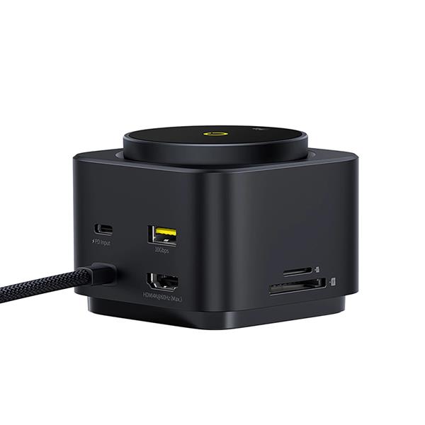 Baseus MagPro Series II to wszechstronny hub USB-C 7w1 z funkcją szybkiego ładowania bezprzewodowego 15W kompatybilną z MagSafe, który jednocześnie zapewnia potężne możliwości rozszerzenia portów i pełną wygodę użytkowania. Kompaktowy jak kostka Rubika, ale kryje w sobie ogromne możliwości: HDMI 4K@60Hz, USB-C i USB-A 3.2 (10Gbps), sloty SD/TF, ładowanie Power Delivery 100W oraz innowacyjną funkcję „screen off” jednym kliknięciem. Wyposażony w antypoślizgową podstawę, wydajny system chłodzenia i magnetyczne mocowanie 10N, idealnie sprawdzi się na biurku każdego użytkownika iPhone’a lub laptopa z portem USB-C. MagPro Series II umożliwia szybki transfer danych, podłączenie wielu urządzeń i bezpieczne ładowanie – wszystko w jednym ultrakompaktowym akcesorium.