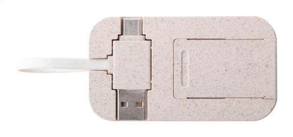 Hub USB z bambusa i ekologicznej słomy pszenicznej z funkcją uchwytu na telefon. Z 2 portami USB i 2 portami USB-C, USB 2.0. Zawiera kabel ze złączami USB i USB-C.