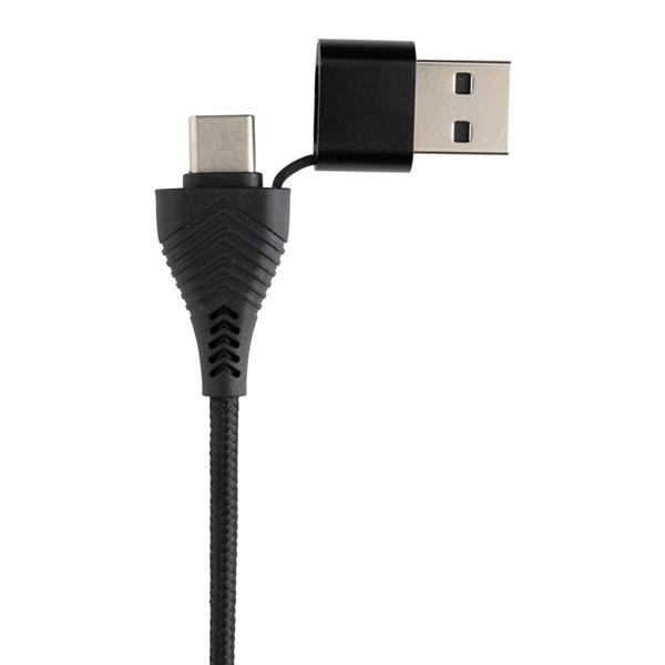 Hub USB, 2 porty USB 2.0, 2 porty USB typu C, kabel wejściowy z końcówkami USB i USB typu C, obudowa wykonana z ABS z recyklingu, bambusa i TPE, całkowita zawartość materiałów z recyklingu obliczona w oparciu o wagę całkowitą przedmiotu: 32%