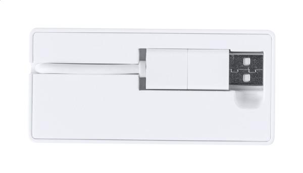 Hub USB z tworzywa ABS z recyklingu, z 2 portami USB i 1 USB-C, USB 2.0. Zawiera kabel ze złączami USB i USB-C.