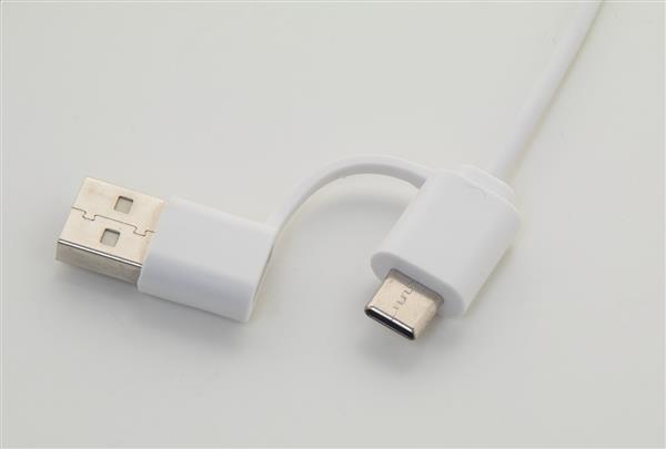 Półprzezroczysty bambusowy hub USB z widocznymi elementami elektronicznymi, 2 porty USB i 2 porty USB-C, USB 2.0. W zestawie kabel ze złączami USB i USB-C.