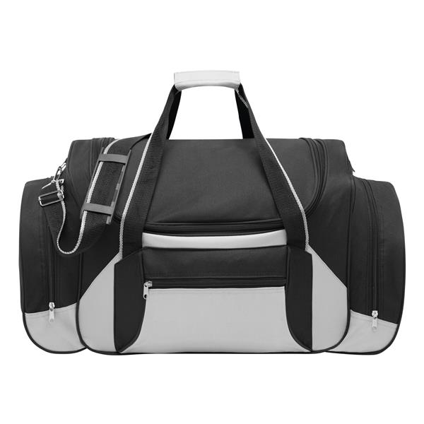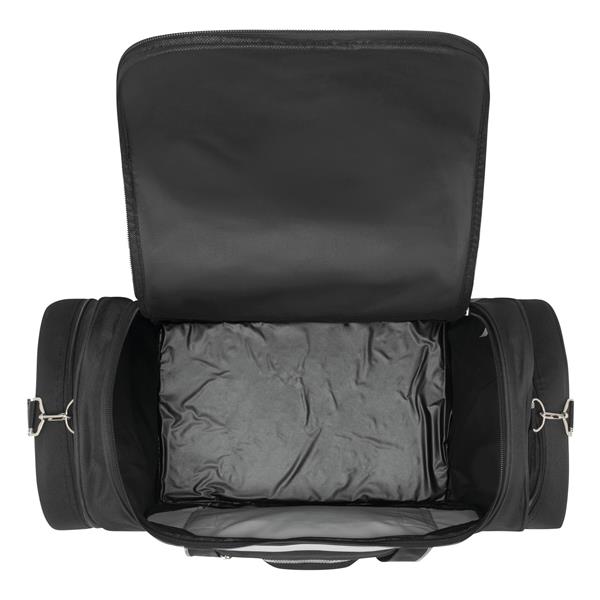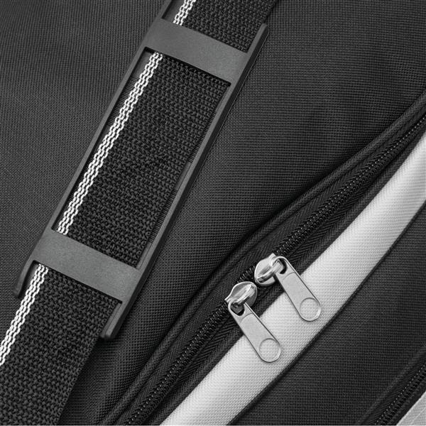 Torba podróżna ICELAND z główną i przednią kieszenią na zamek błyskawiczny, z 2 zaokrąglonymi kieszeniami bocznymi z zamkiem, zawiera regulowany i odpinany pasek na ramię.