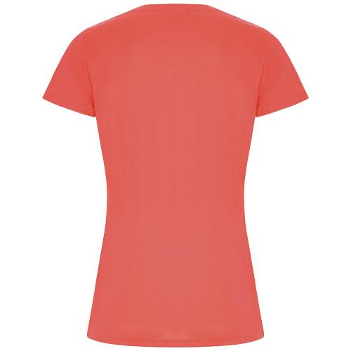 Imola sportowa koszulka damska z krótkim rękawemDopasowana koszulka techniczna z krótkim rękawem z poliestru CONTROL-DRY pochodzącego z recyklingu. Dekolt w szpic z dopasowanymi, krytymi szwami. Logo ECO na rękawie. Usuwalna metka ECO. Opakowanie z materiału pochodzącego z recyklingu. Tkanina techniczna. Materiał: Dzianina Interlock47% Recicled Poliester, 53% Poliester, 135 g/m2 Kolor: Fluor Coral