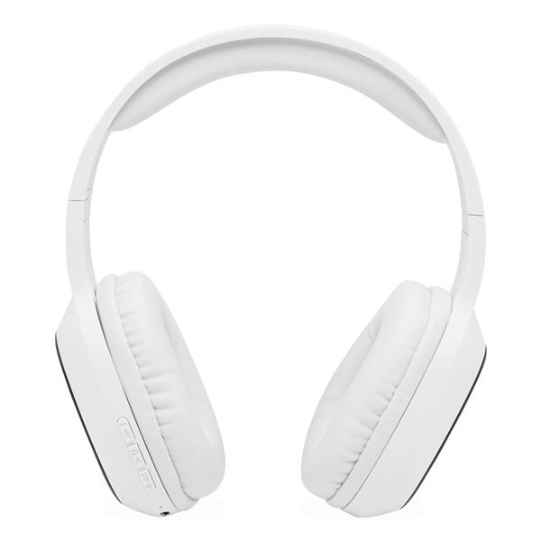 Słuchawki bezprzewodowe INDEPENDENCE z wyściełanym pałąkiem i nausznikami. Regulowany rozmiar, prawy nausznik ze zintegrowaną funkcją obsługi i funkcją zestawu głośnomówiącego, zasięg ok. 10 m, akumulator o pojemności 200 mAh, czas pracy ok. 5-6 godzin, kabel USB do ładowania (długość ok. 50 cm) i kabel z wtyczką audio jack 3,5 mm (długość ok. 50 cm).