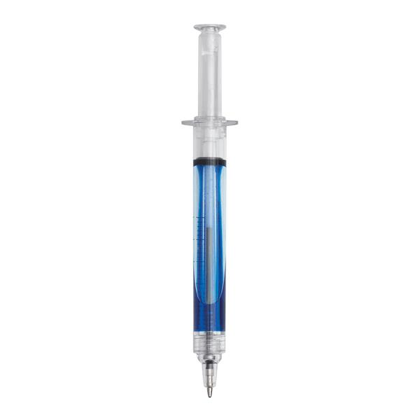 Długopis w formie strzykawki INJECTION, transparentny korpus z nadrukowaną skalą, niebieski tusz. Materiał: Plastik Kolor: niebieski Tagi: Długopisy,długopisy,akcesoria biurowe,przybory do pisania